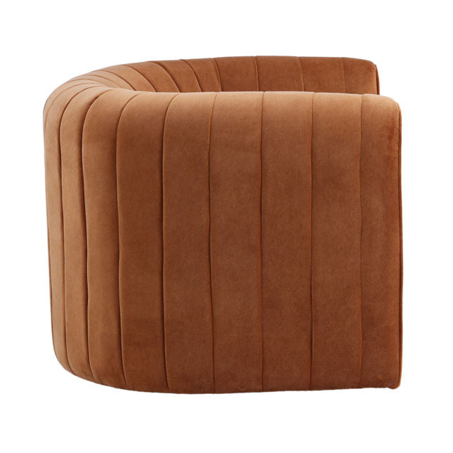 rounded channel tufted velvet orange accent chair