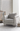 silver neutral fabric with stainless steel frame, includes decorative pillow