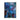 abstract painting, mostly blue, with hints of orange, green, yellow, silver frame